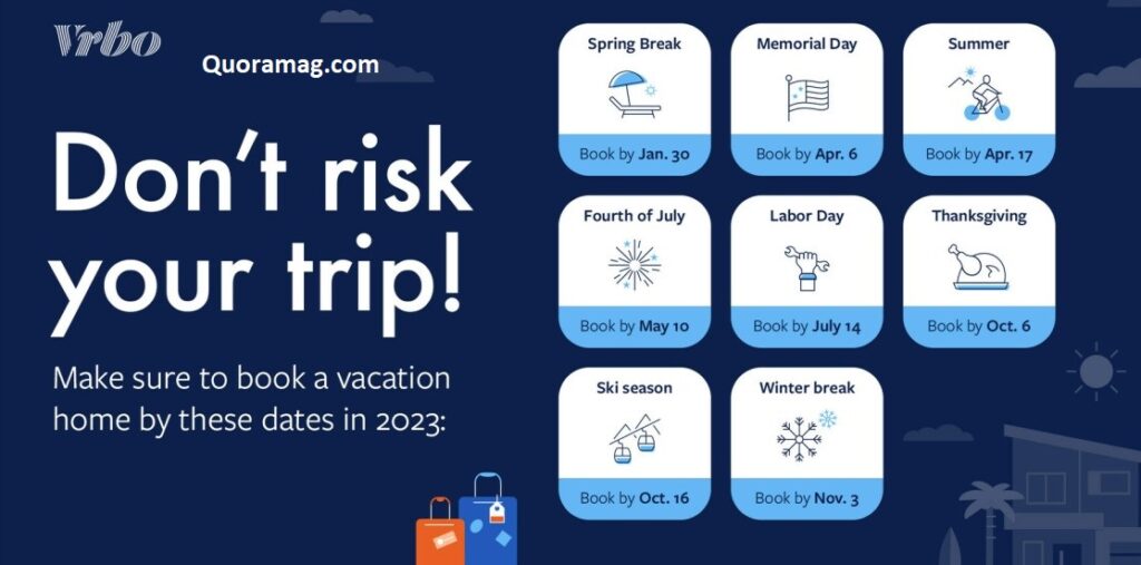 Vrbo suggests booking at least 2 months ahead for many locations, and even 3 months ahead for peak times like holiday weeks.